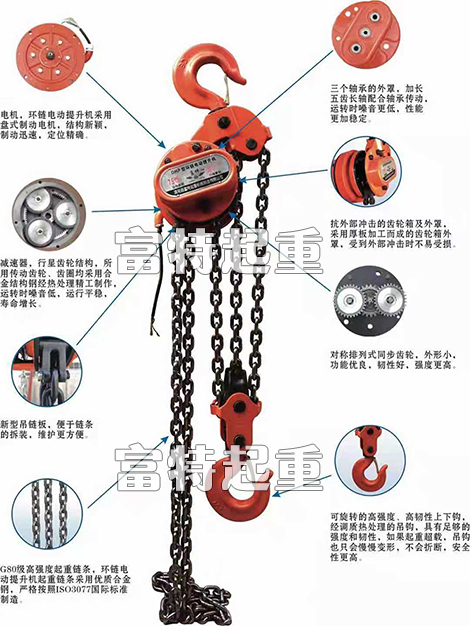 5:產(chǎn)品結(jié)構(gòu)緊湊,配套鑄造熱處理起重上下鉤和G80級,起重鏈條使用方便,安全可靠。